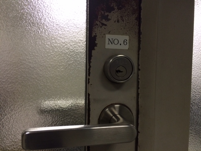 深夜に会社の警備員さんから解錠依頼 会社内を警備中 鍵を部屋の中に置いたまま外に出てしまい自動施錠の為 中に入れなくなったとのこと。開けやすそうな扉を見付け作業開始、私の後ろで警備員さんは神様にお願いしている 何とか壊さず解錠 首が繋がったそうです。