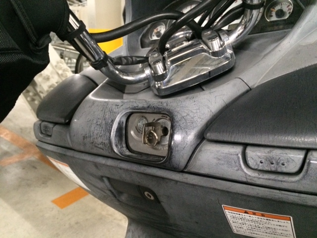 大阪市北区でバイクの鍵作製 お客様よりシートの中に鍵を閉じ込めてしまい開錠依頼。シート横に鍵穴が無くこの場合 鍵を作製するしか開けれません気を付けて下さい。